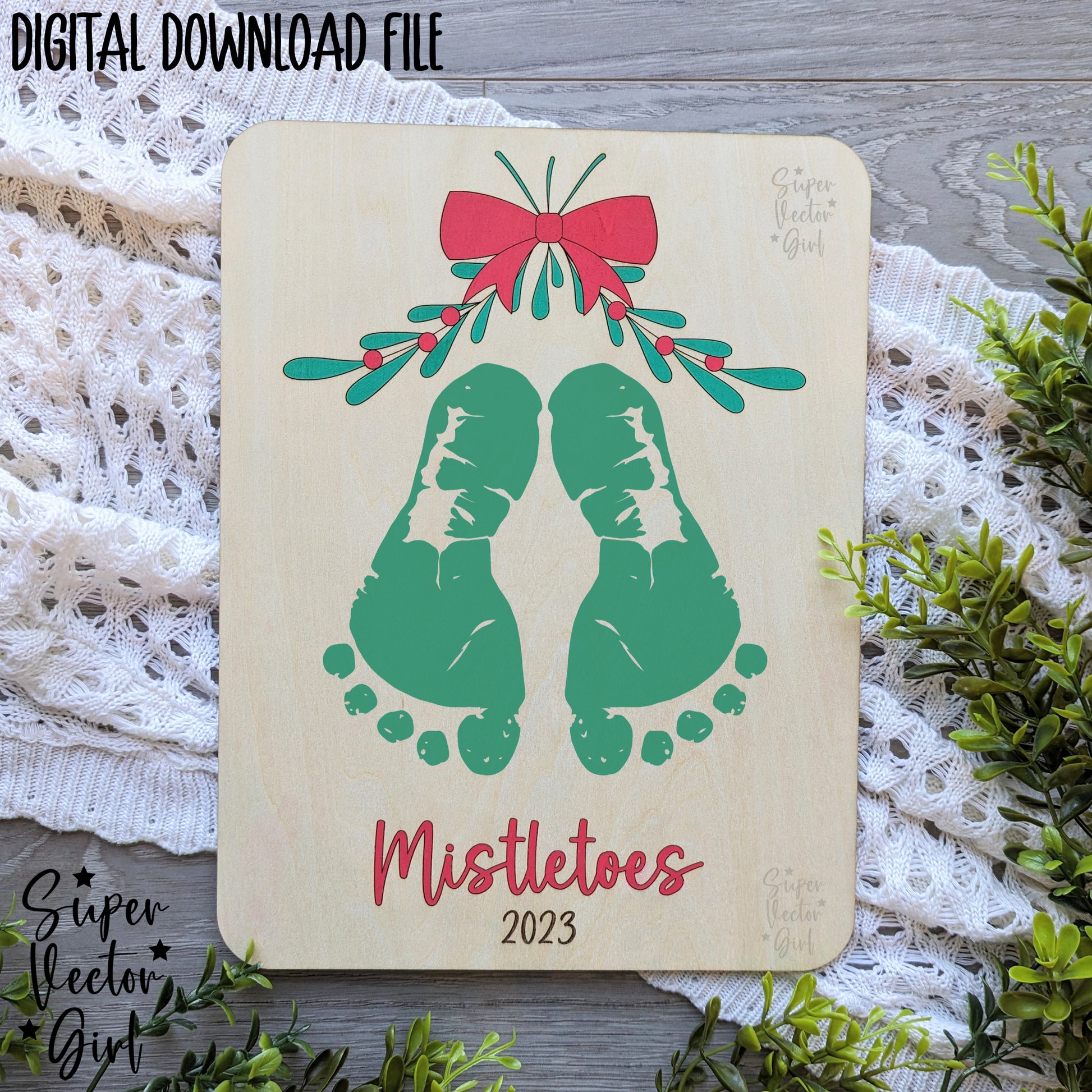 Christmas Footprint Mistletoes Keepsake, SVG, Laser Cut File files, bouquet, floral, DIY gift, kids kid, Baby's First Christmas, Mistle toes board print