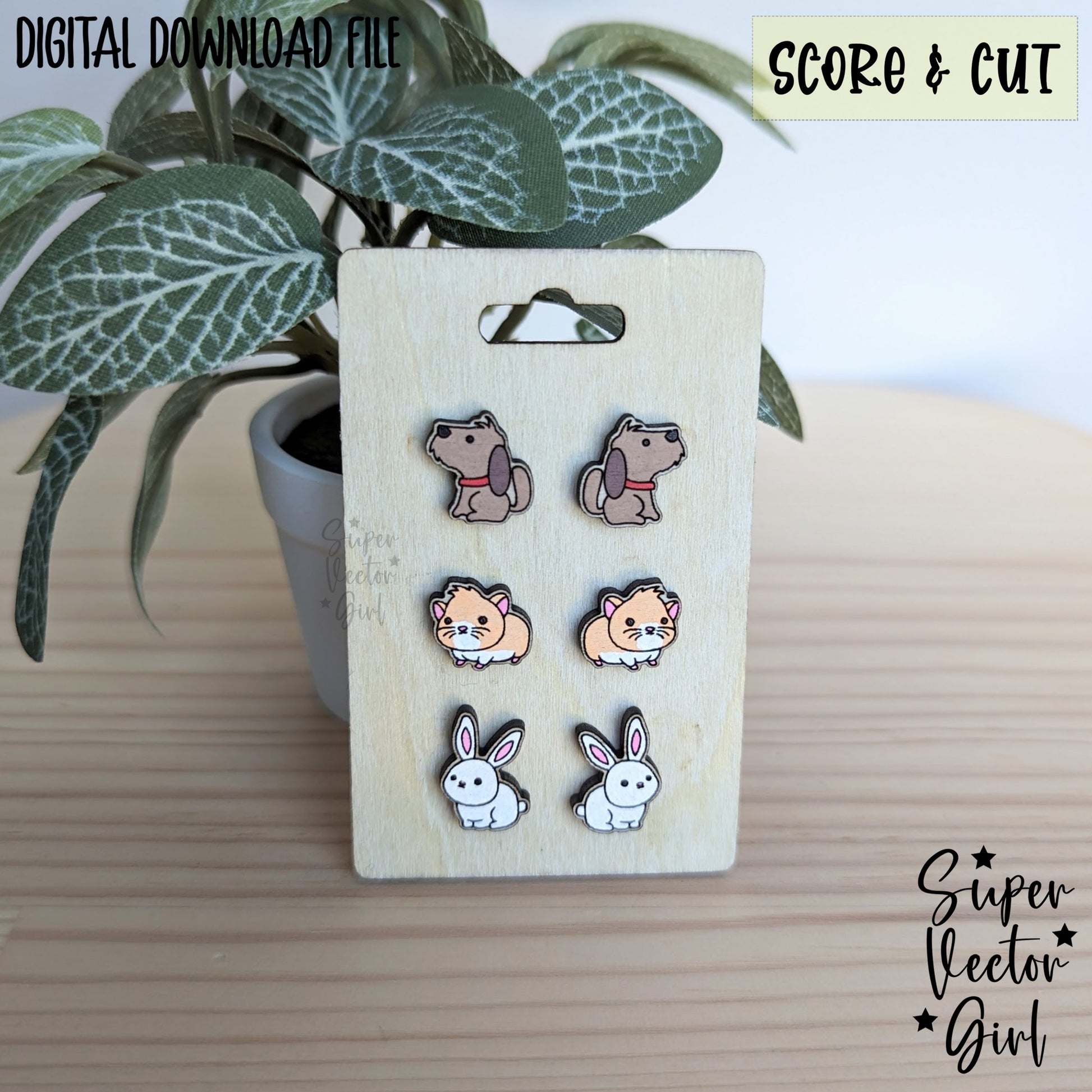 Pets Animals Set 2 Earrings Bundle, SVG, Laser Cut File, xTool Glowforge files, Score & Cut, Laser Cut Earrings, Cute rabbit dog puppy guinea pig