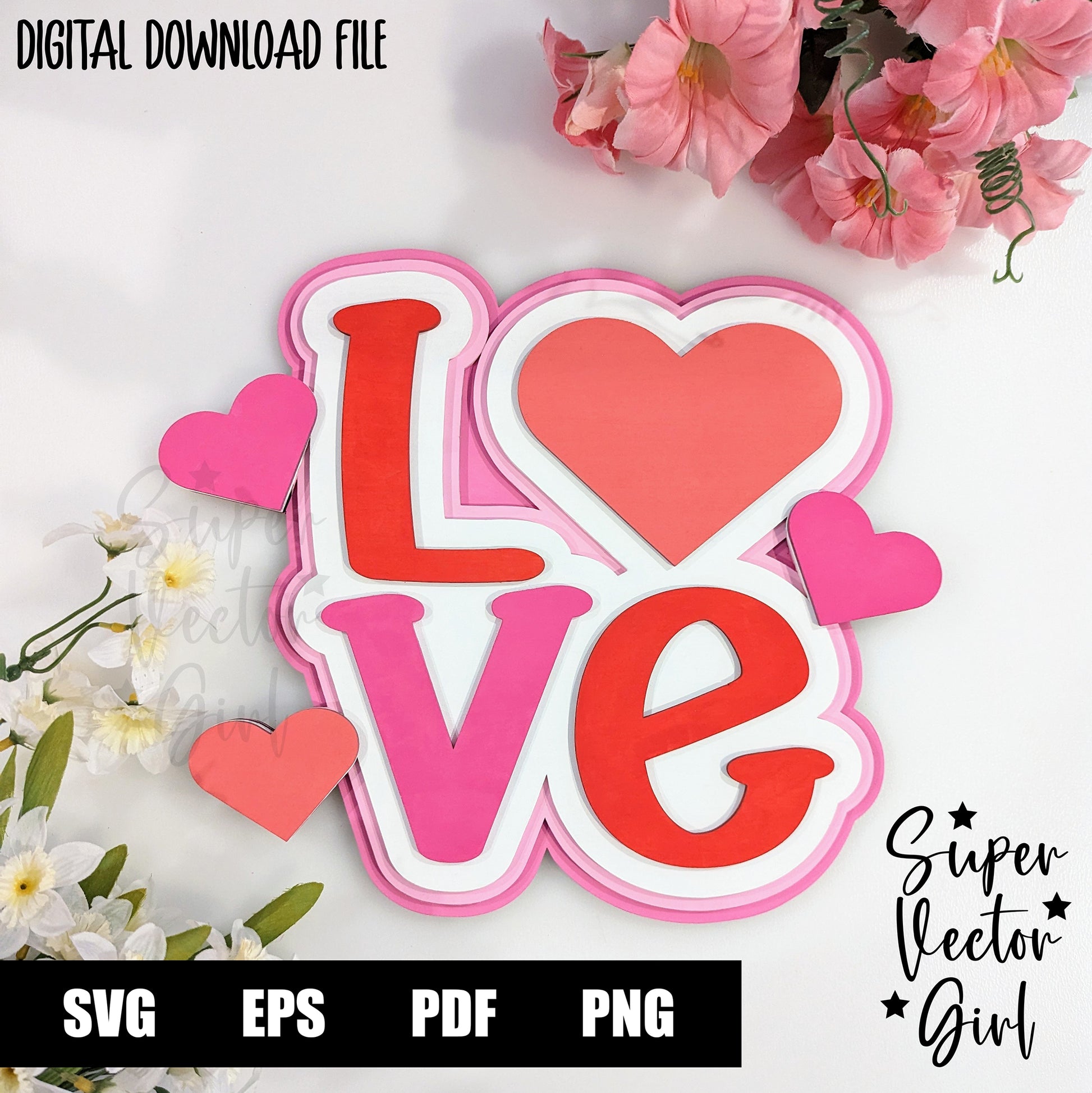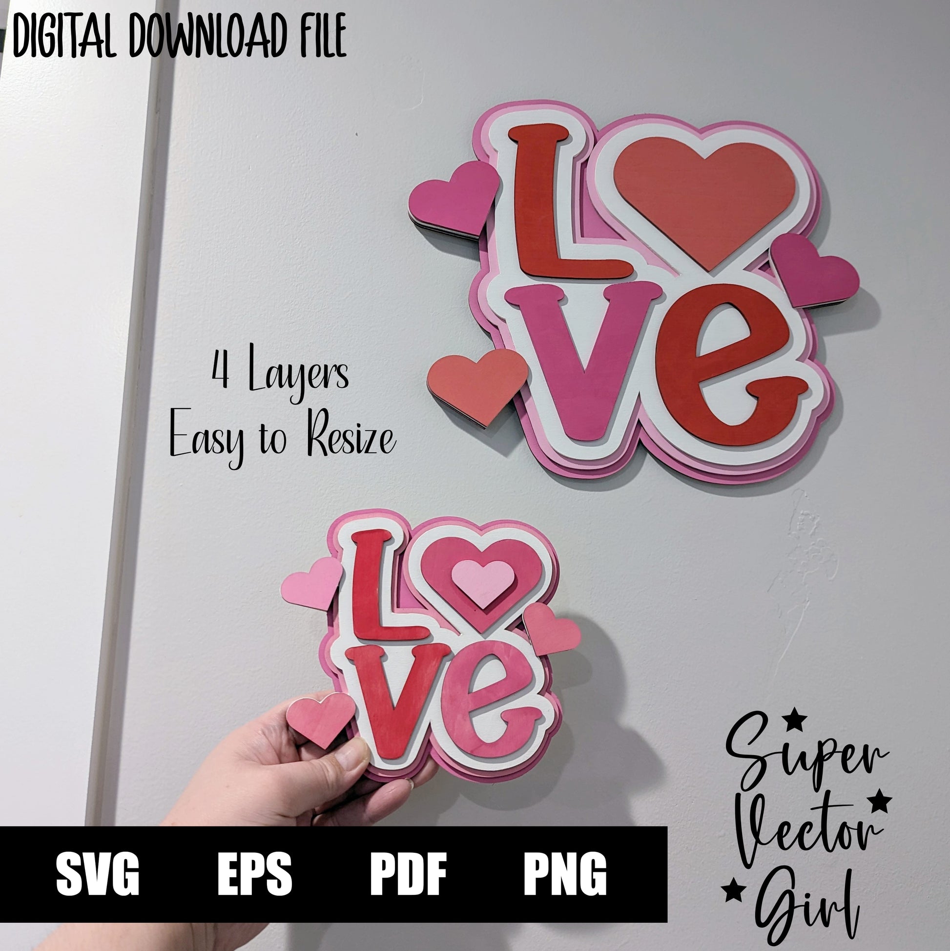 Layered Love Door Hanger Sign, SVG, Laser Cut File, Valentine's Day, Wall Decor Home Decoration, xTool Glowforge files, Heart Shelf Sitter