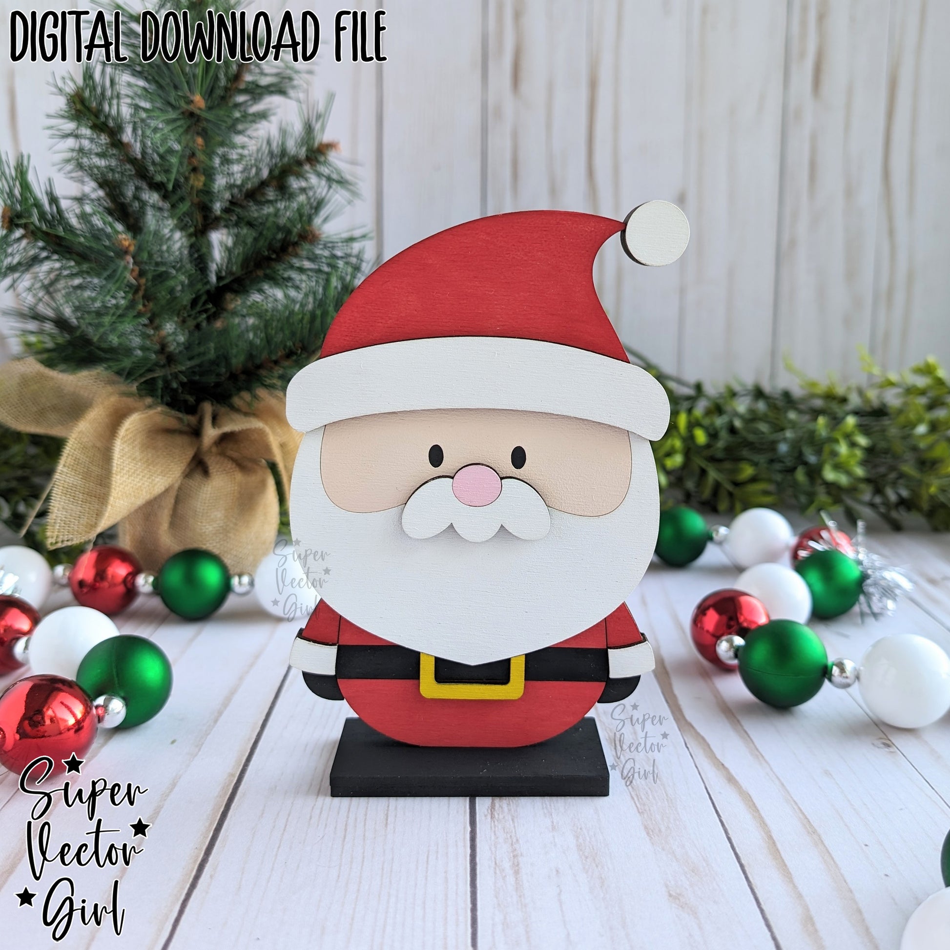 Cute Christmas Santa Shelf Sitter Sign, SVG, Laser Cut File, Glowforge xTool files, Porch Sign, Home Decor, Table Mantle Decoration, Winter Holidays