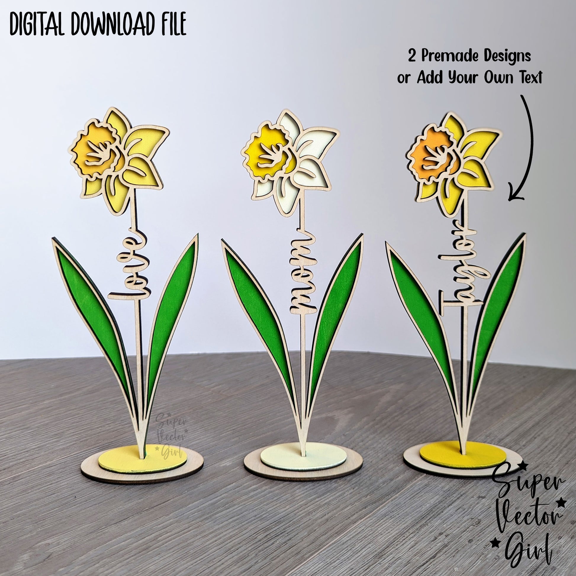 Daffodil Laser Cut File Stand, SVG, Mother's Day Mom Daffodils Valentine's Day Birthday, xTool Glowforge files, Flower Love Mum Spring Custom Name