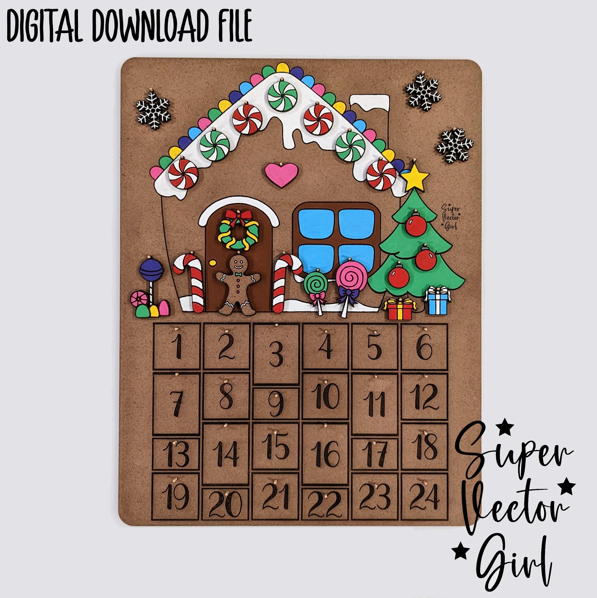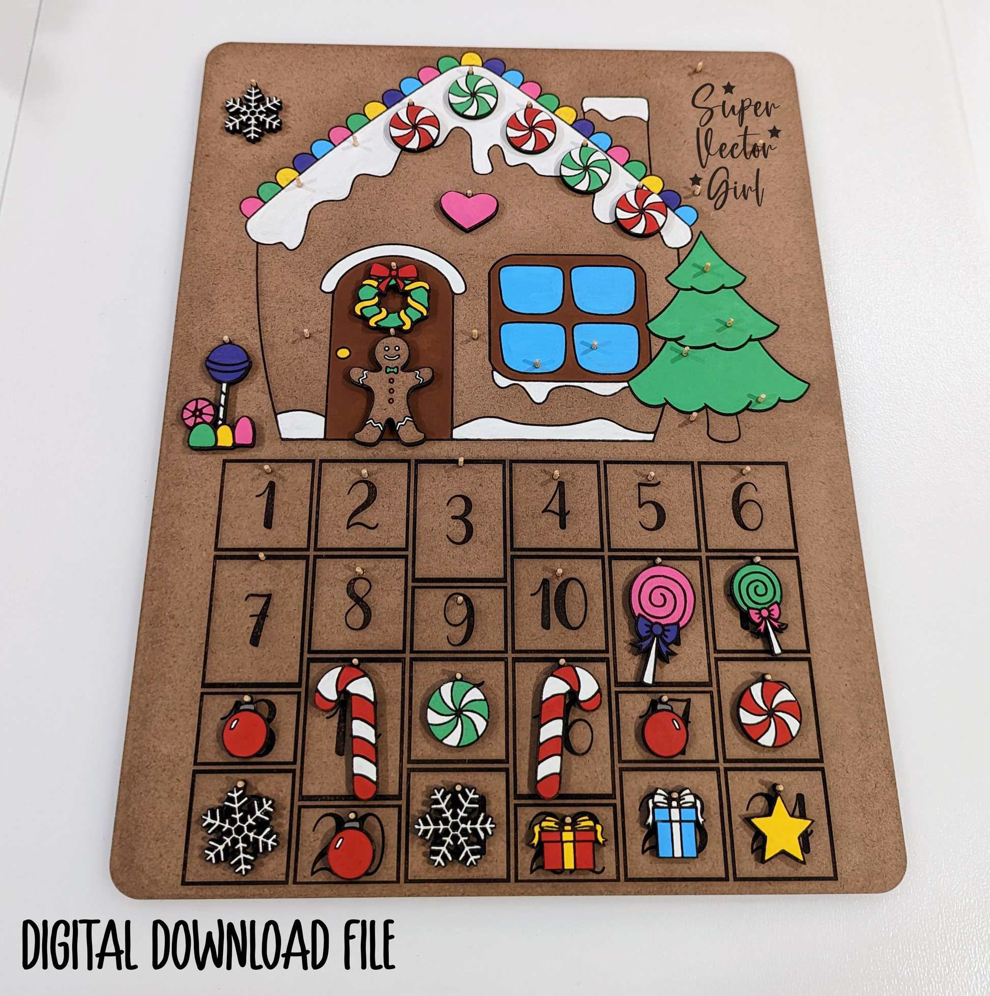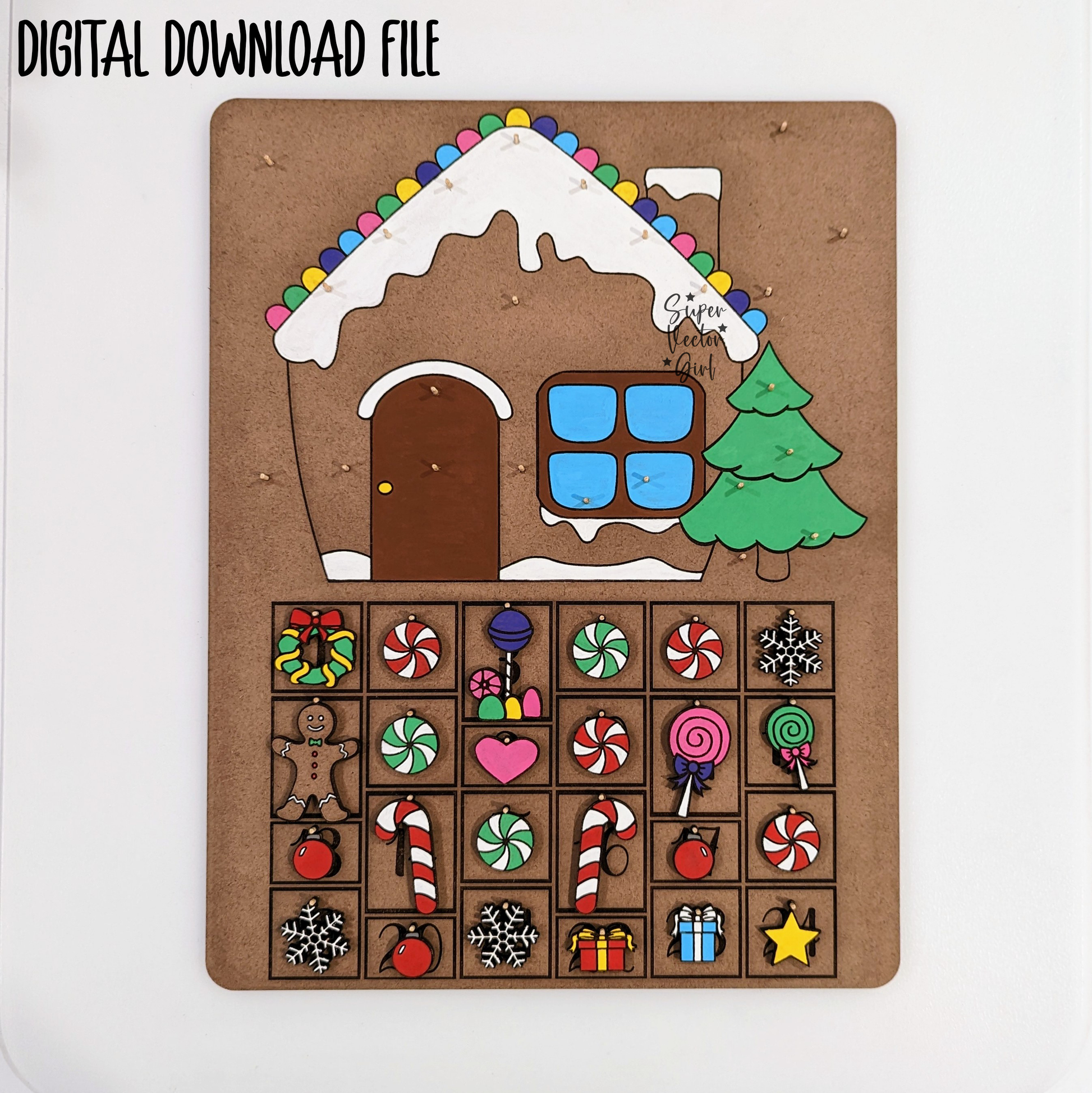 Gingerbread House Advent Calendar, SVG, Digital Laser Cut File, xTool Glowforge files, DIY Count down to Christmas, wooden ornaments