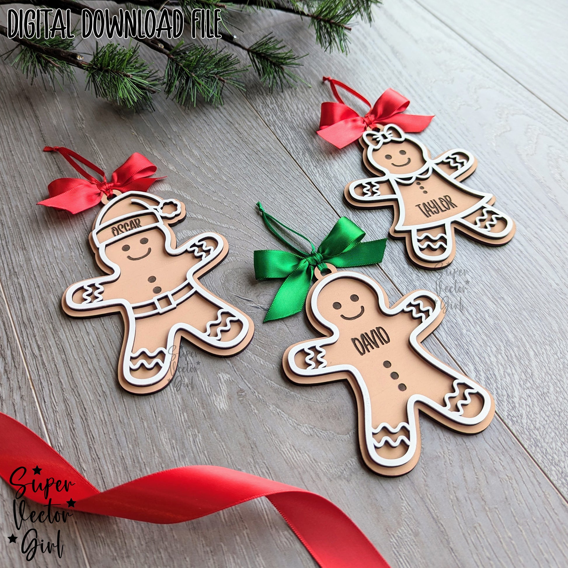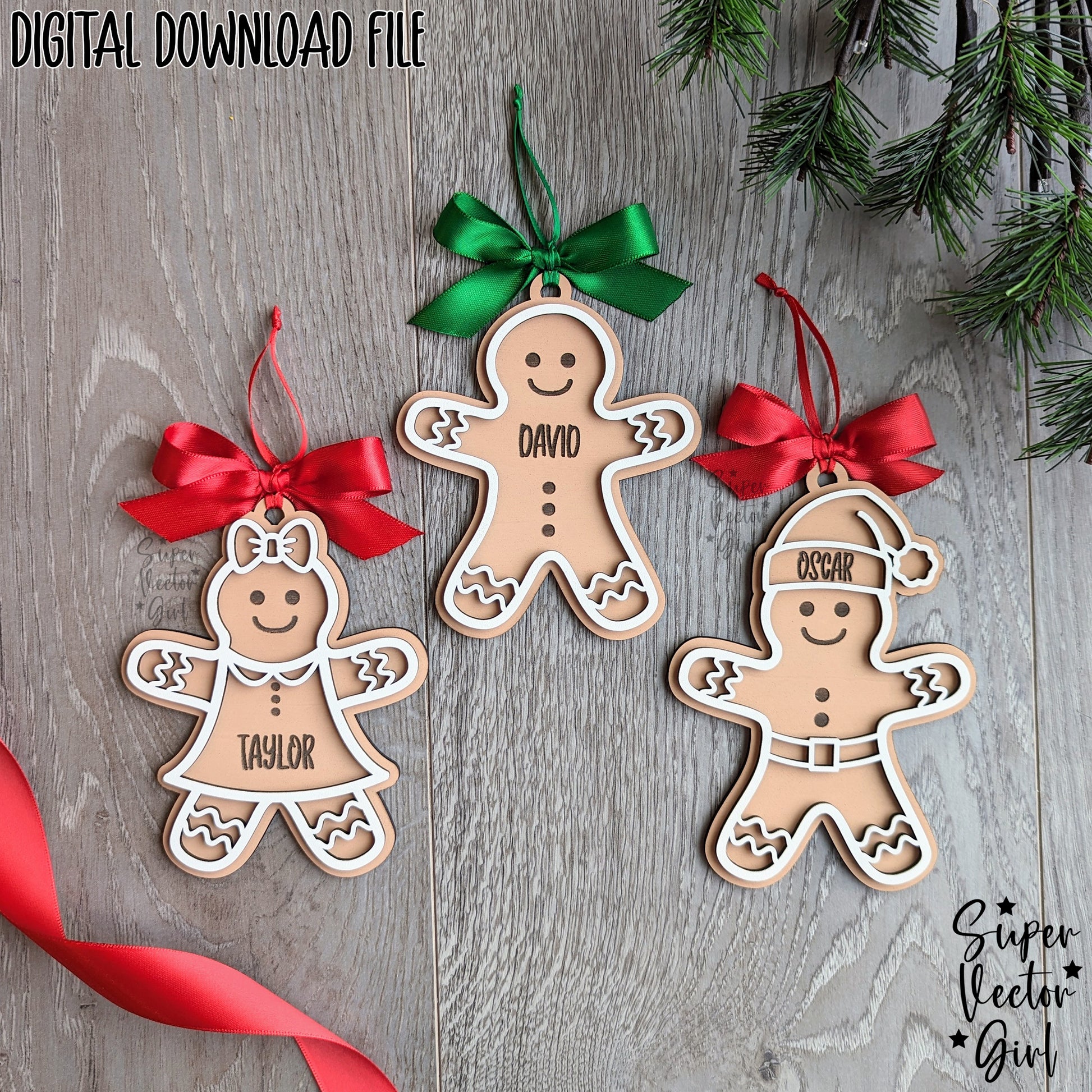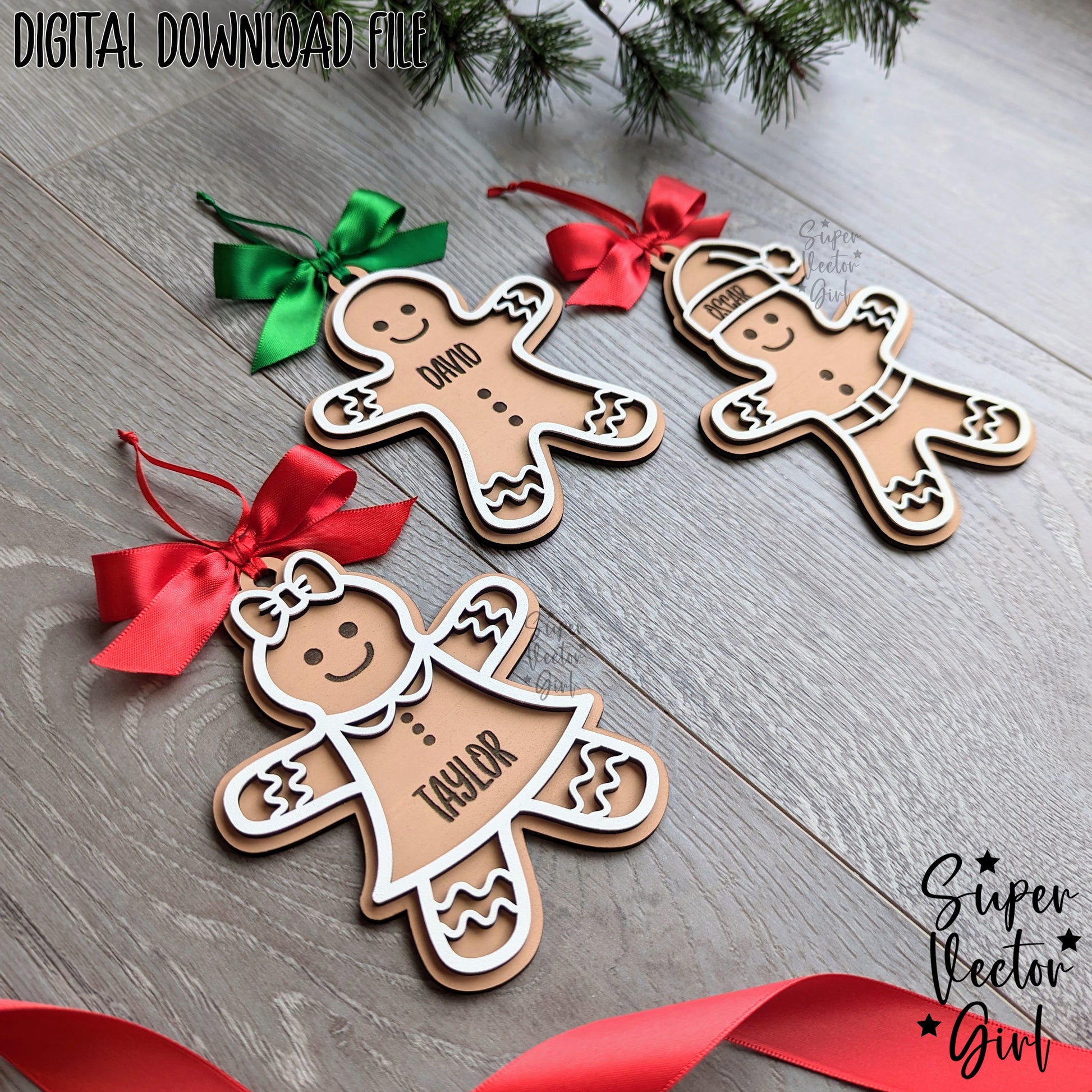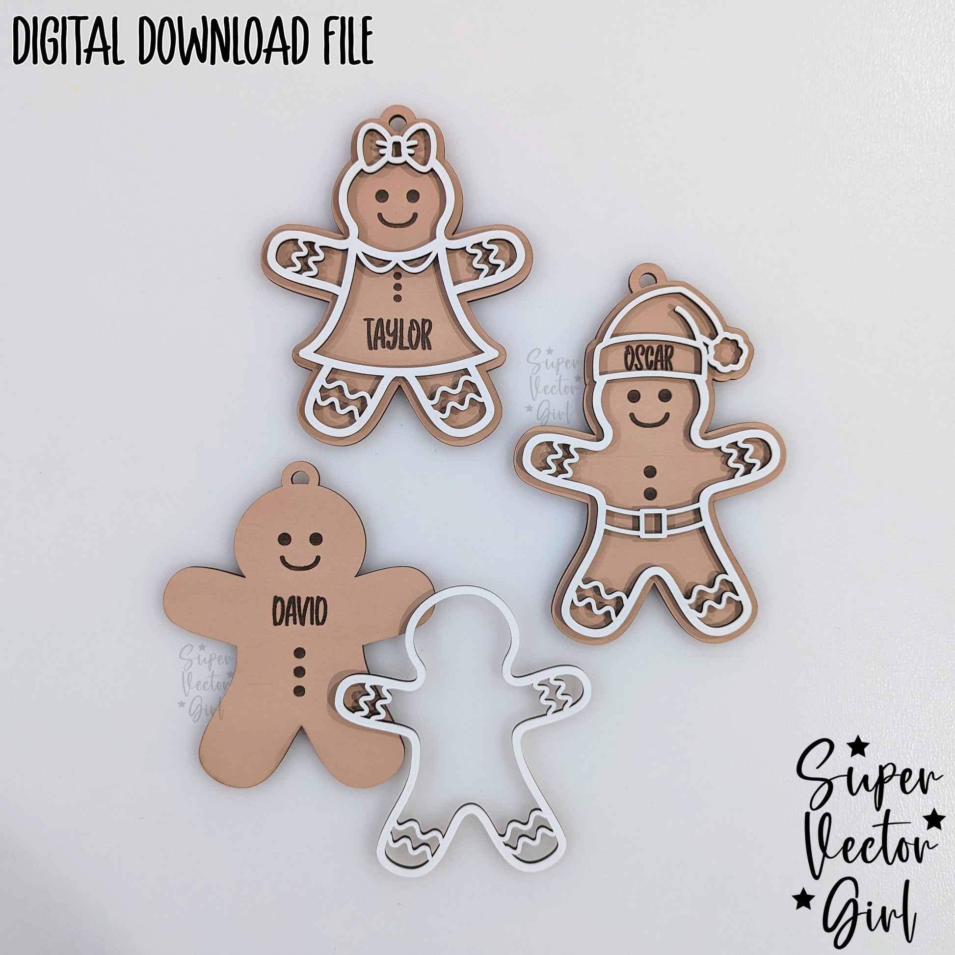 Gingerbread Man Christmas Ornament, SVG, Laser Cut File, Custom Name Personalized, xTool Glowforge files, Gingerbread Girl Boy People, Santa Gift Tag