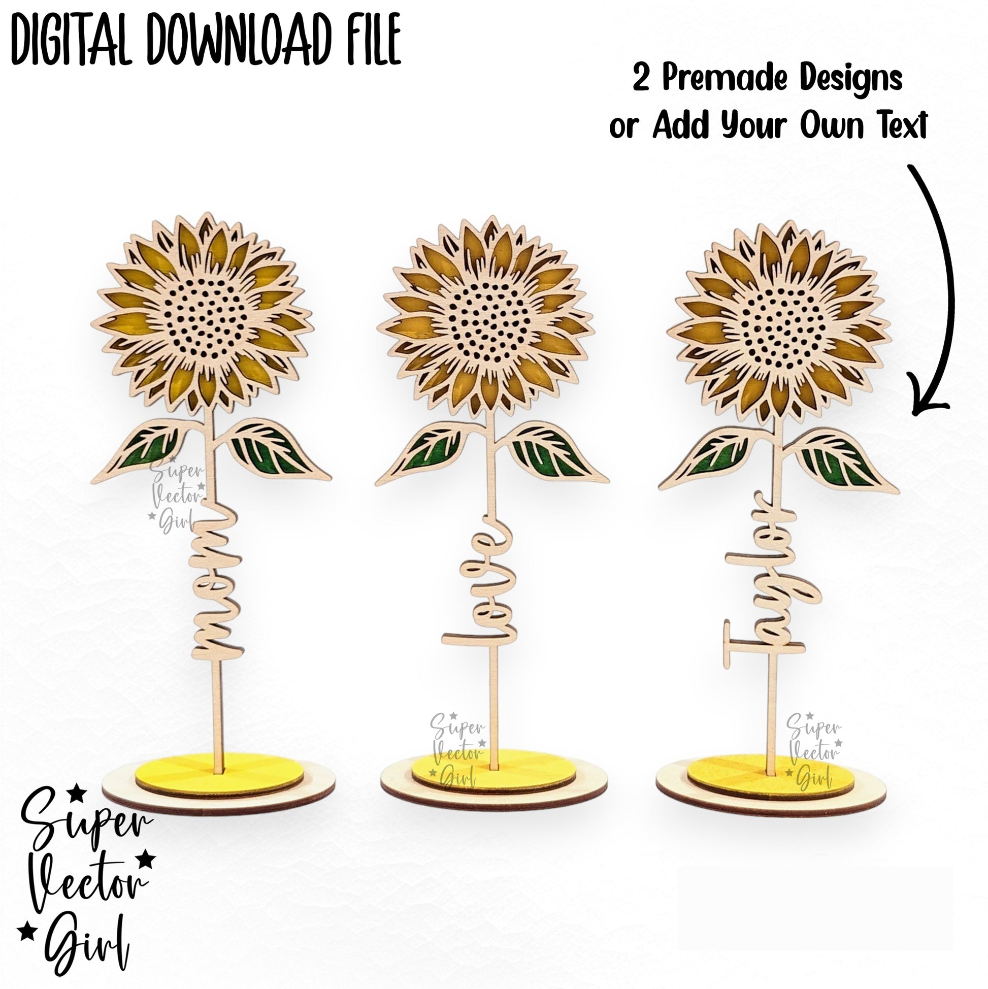 Sunflower with Stand SVG Laser Cut File, Mother's Day Mom Valentine's Day Anniversary Birthday Digital xTool Glowforge files Flower Love Name Gift