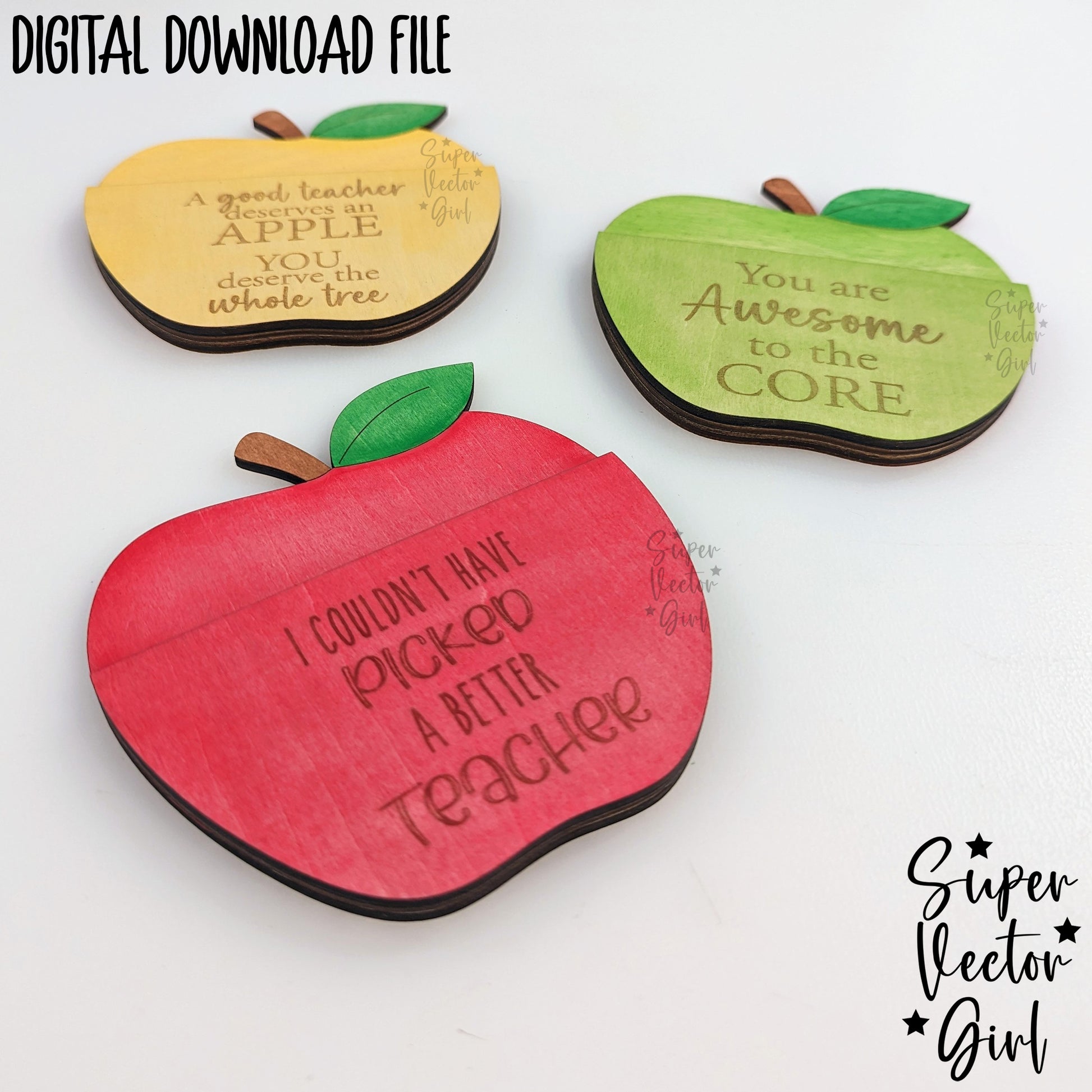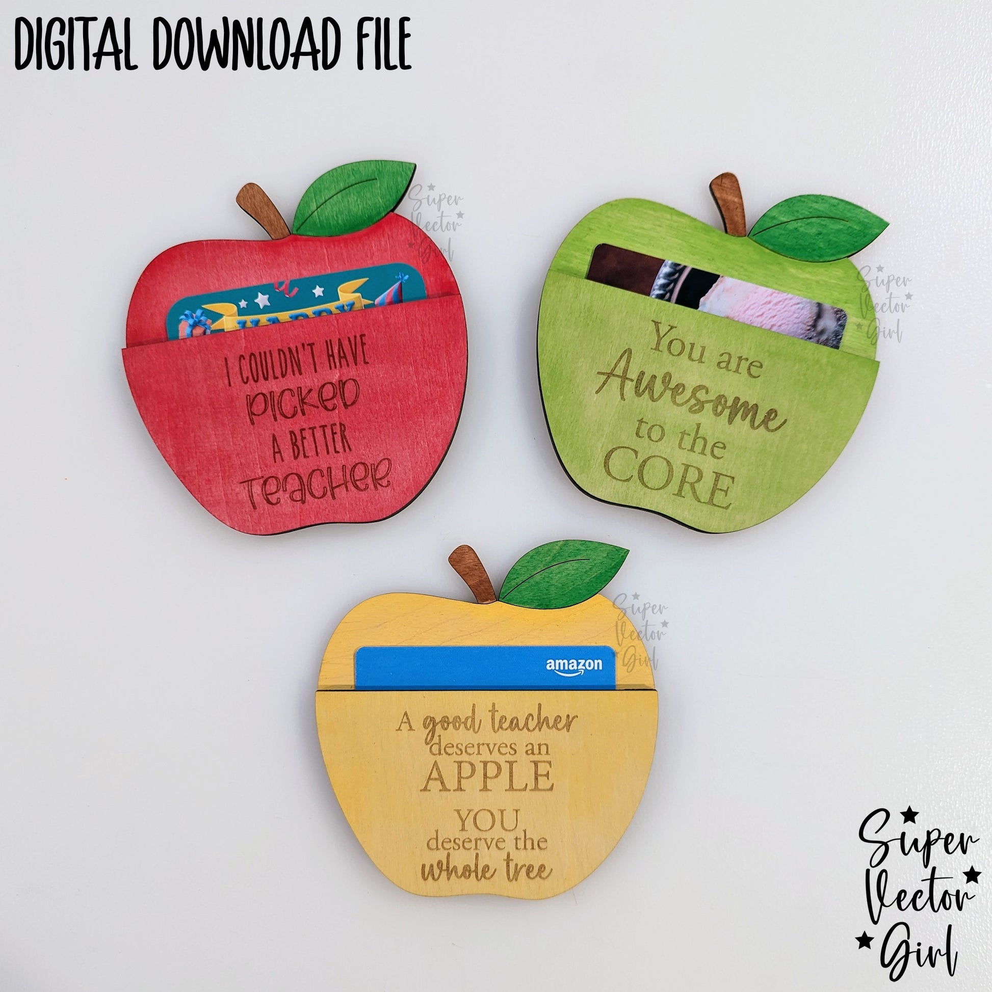 Teacher Apple Gift Card Holder SVG File, School Teacher Appreciation Gift, Digital Laser Cut File, xTool Glowforge files, Funny Gifts Money Giftcard Staff