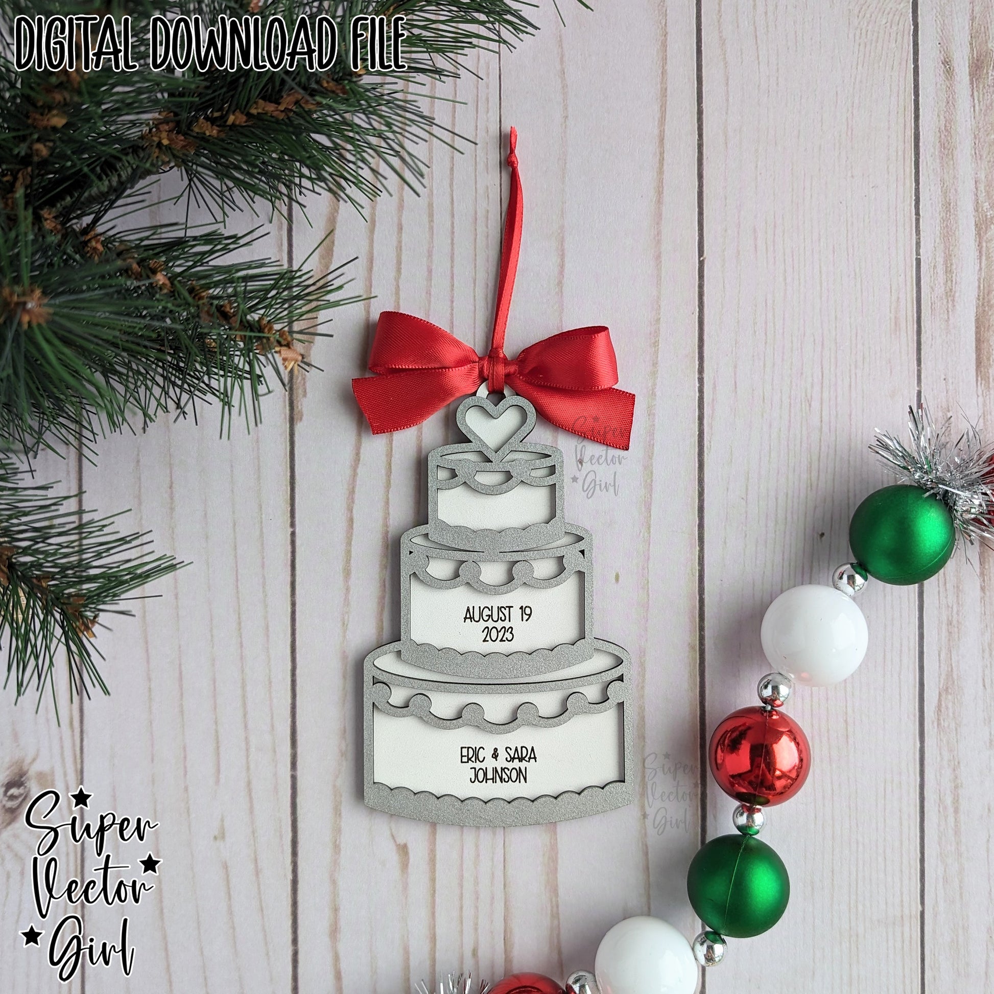 Wedding Cake Personalized Christmas Ornament, SVG, Laser Cut File files, Gift Couple Engagement, Bride, 1st First Christmas Married, Mr. Mrs. Custom Name